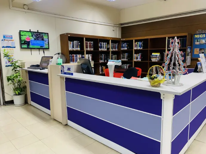 The NIGS Library offers comfortable spaces for every kind of study, from reading areas on the first and second floors to individual study carrels for focused work. A group discussion room is also available for collaborative learning and brainstorming.